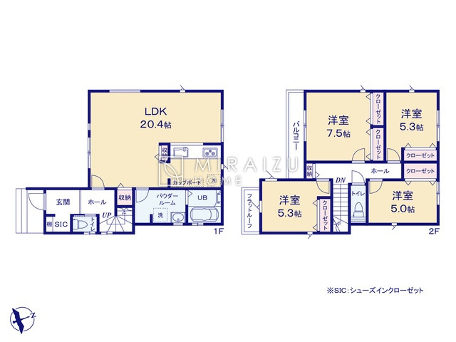 ご家族様のプライベート空間が確保できる素敵な間取りです。また敷地ゆったりですので、おうち時間を楽しむのにもぴったりですね♪