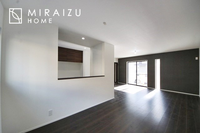 大きな窓が特徴の南向きリビングでは、太陽光も沢山取り込むことが出来てお家の中にいても日光浴が可能ですね、開放的な空間です。インテリア選びも楽しそう、ご家族様で相談しながらインテリア配置も楽しみたいです
