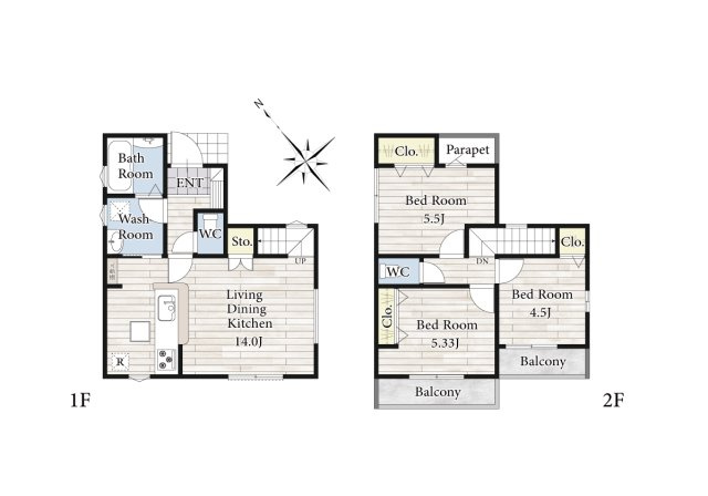 ご家族様のプライベート空間が確保できる素敵な間取りです。また敷地ゆったりですので、おうち時間を楽しむのにもぴったりですね♪