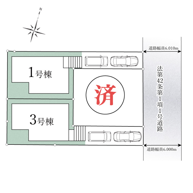 【間取図:1号棟】陽の光をたっぷりと浴びながら気持ち良く生活が出来ます。夢のマイホーム、夢ではなく実現出来ます!見学・ご相談等、お気軽にご連絡下さい。