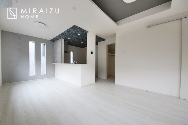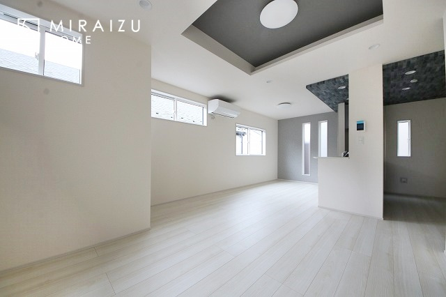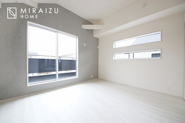 大きな窓が特徴の南向きリビングでは、太陽光も沢山取り込むことが出来てお家の中にいても日光浴が可能ですね、開放的な空間です。インテリア選びも楽しそう、ご家族様で相談しながらインテリア配置も楽しみたいです
