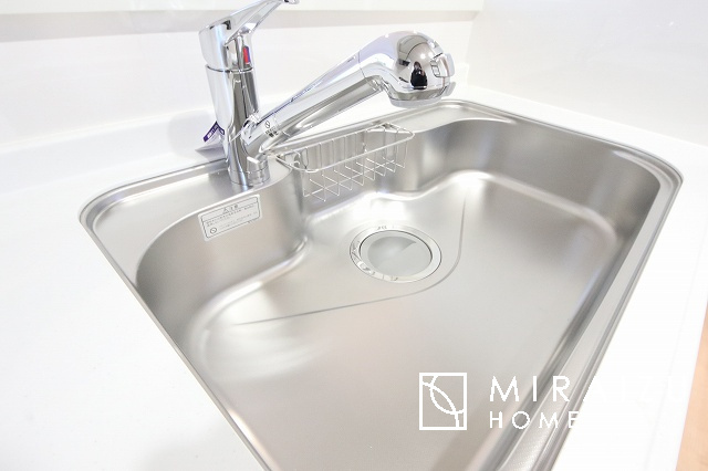 ■シンク■ お掃除もしやすい大き目のシンクです。耐熱性・耐久性・対磨耗性が高いというメリットがございます。お掃除が苦手な方でもいつでも綺麗に楽にメンテナンスが可能です。