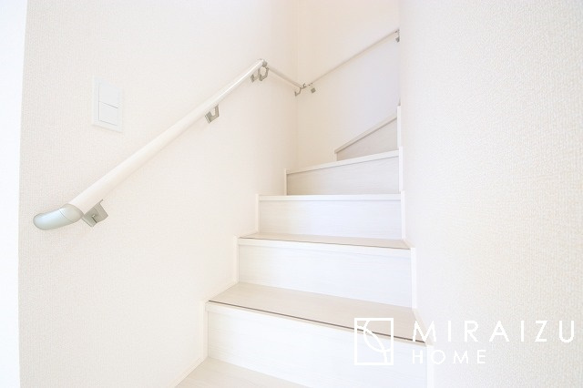 プライベートの空間もみんなで過ごす空間も両社兼ね備えたつくりです。階段には安全性を配慮し、手すりを設置。太陽の光と風が心地良い窓も付いた内装です。
