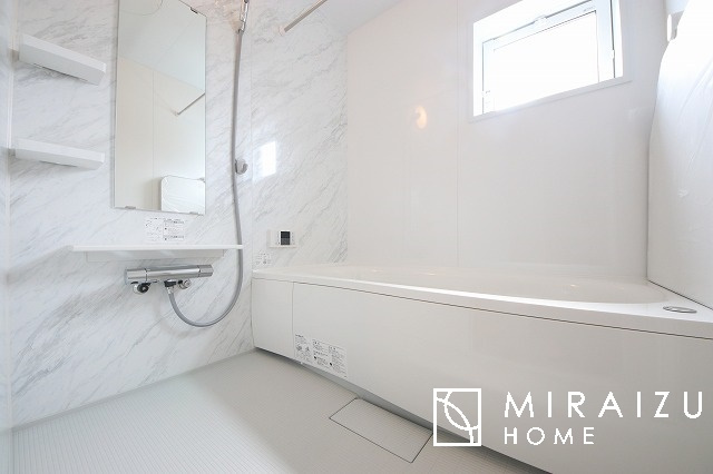 清潔感のあるホテルのような広い浴室が自慢です。疲れた日にはお湯をためてリラックスタイムを楽しみたいですね、今はスマホも防水の時代です、半身浴をしながら動画視聴、漫画視聴、楽しく過ごしたいですね^^