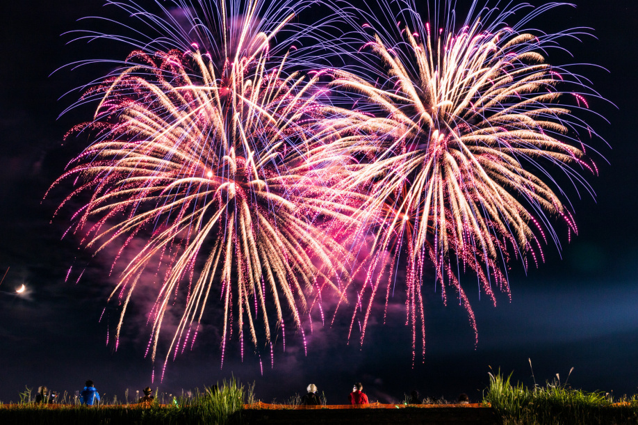 夜は一尺五寸玉の大輪の花火に