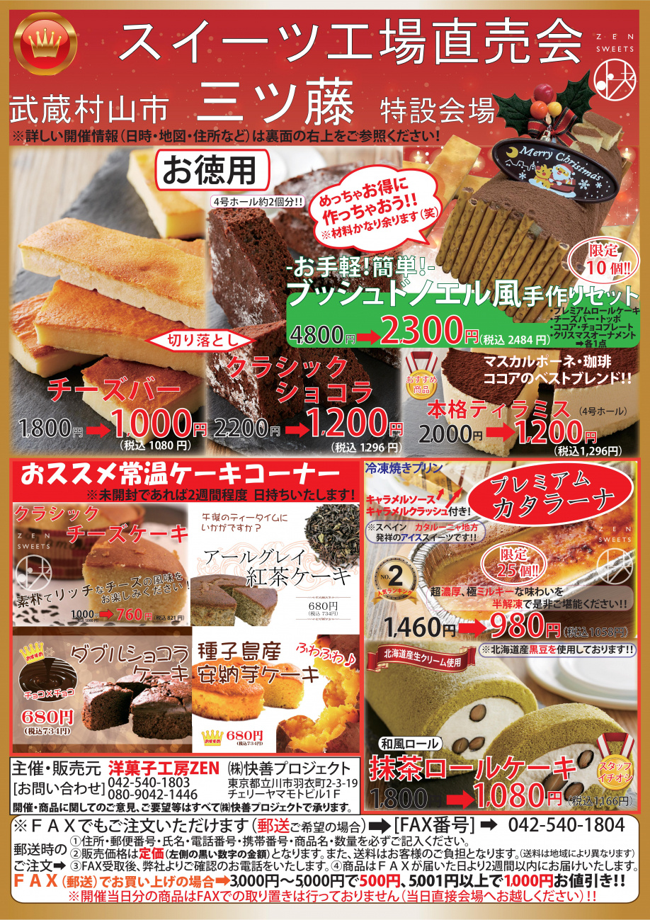 *【町田市金井・武蔵村山市三ツ藤】ケーキ販売会のお知らせ*