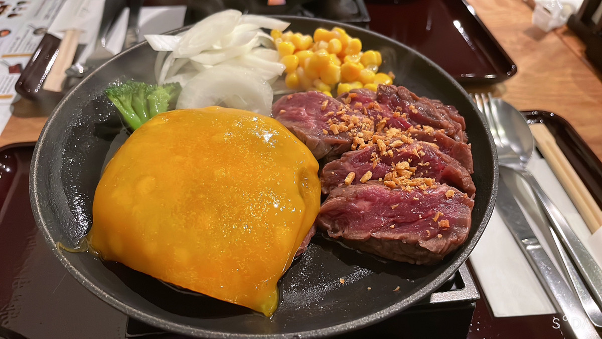 ハンバーグを切ったら断面を鉄板につけて食べるという方法がありました!